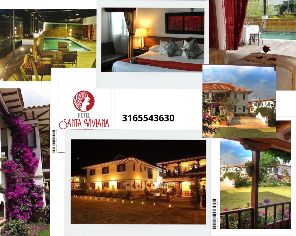 Hotel Santa Viviana ubicado en el corazón de Villa de Leyva cerca de la Plaza principal y de muchos atractivos turísticos invita a disfrutar gratas experiencias en un entorno acogedor romántico y familiar de tranquilidad para parejas, familias, grupos corporativos. Nos caracterizamos por la calidez en el servicio de nuestro equipo valores reconocidos por nuestros huéspedes en varias plataformas.